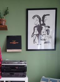 The bold and lyrical graphic of this piece of art gave us a feeling of 60's jazz character and design from another time. James' use of ink demonstrates the most you can get from the medium. His cast of characters and playful lines create music in their stories. Wonderful.